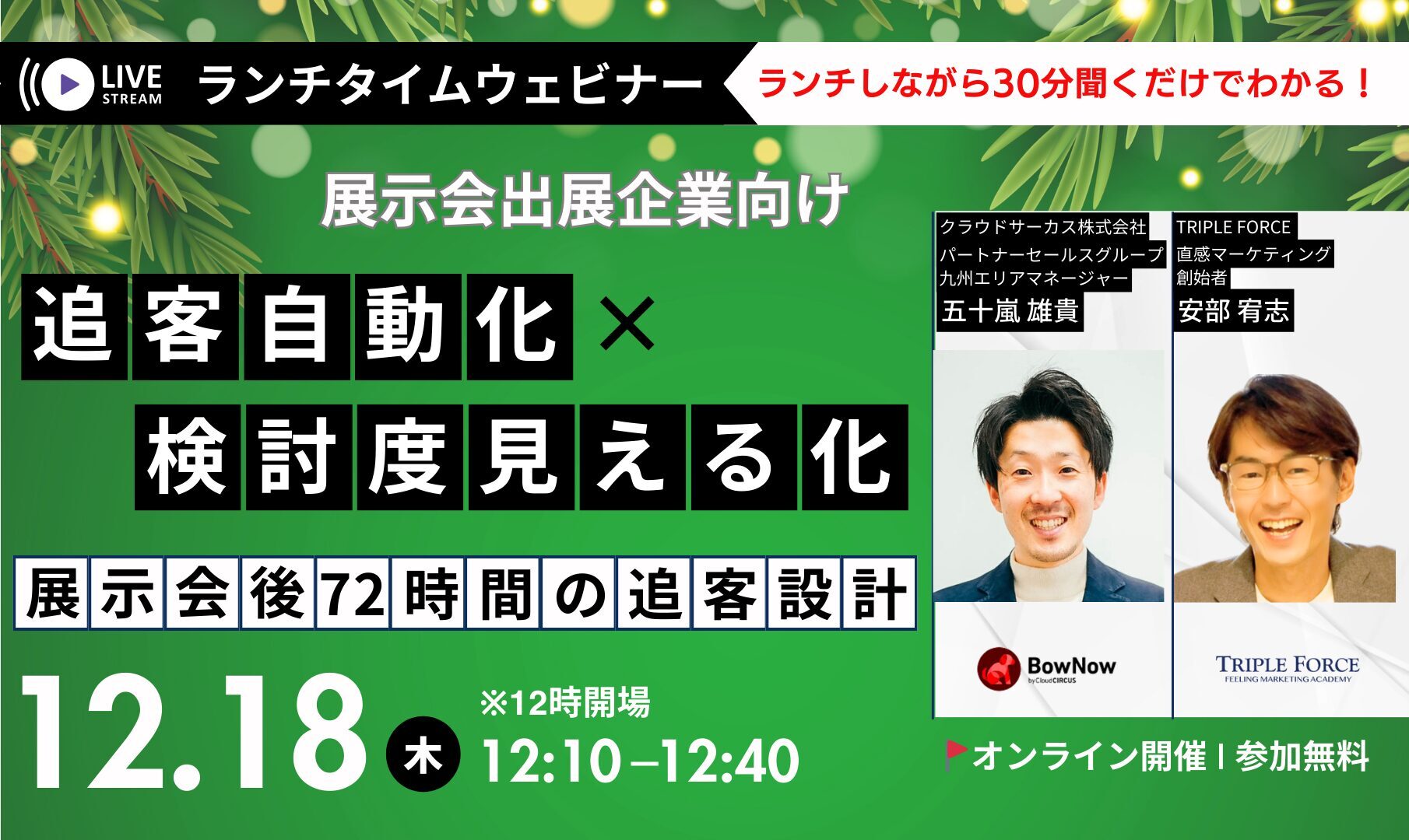 【12月18日ランチタイムウェビナー】展示会後72時間の追客設計「追客自動化×検討度見える化」