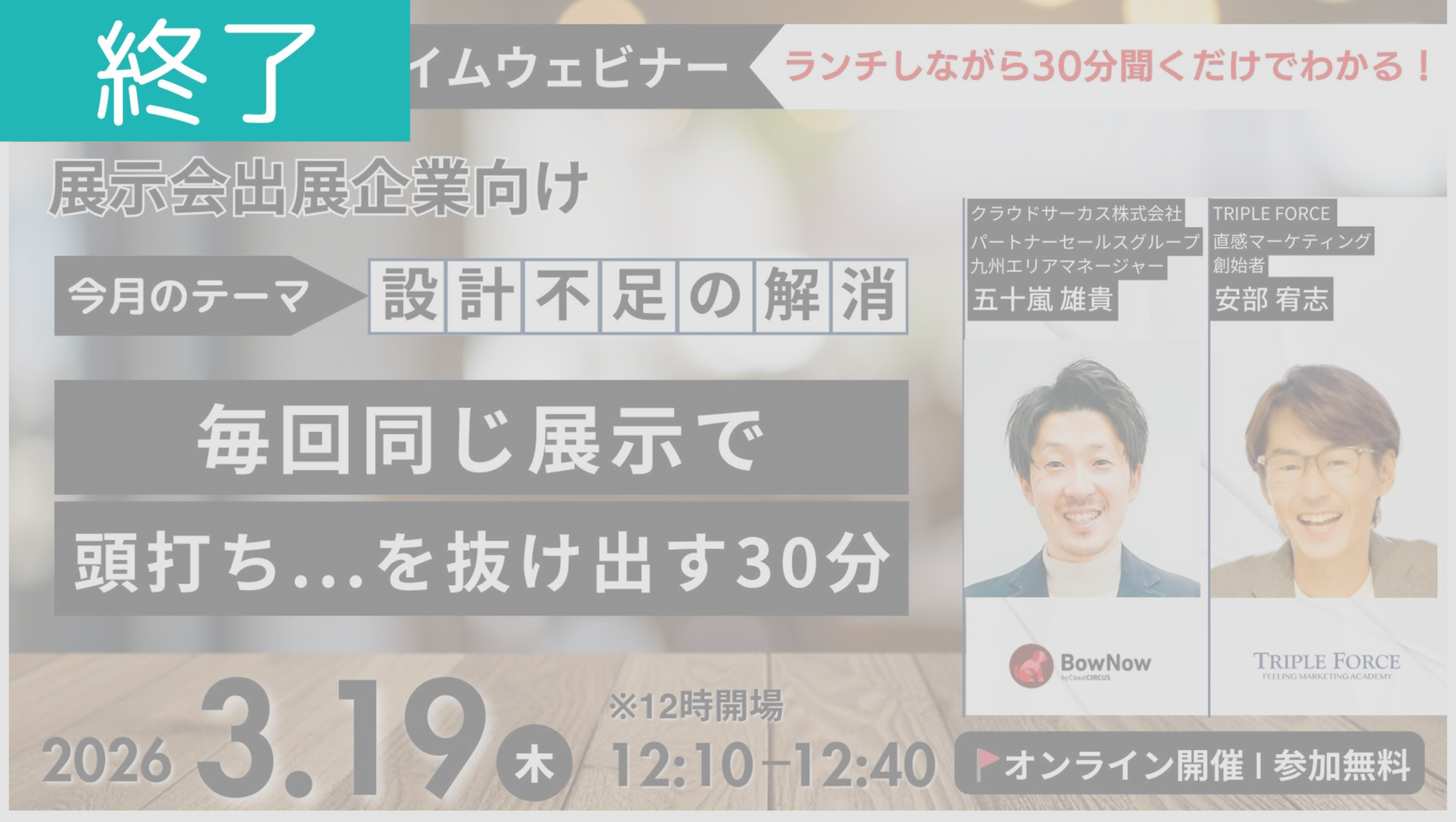 <開催終了>【2026/3/19 ランチタイムウェビナー】今月のテーマ:設計不足の解消「毎回同じ展示で頭打ち…を抜け出す30分」