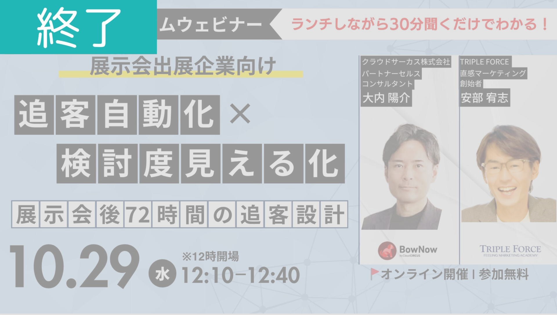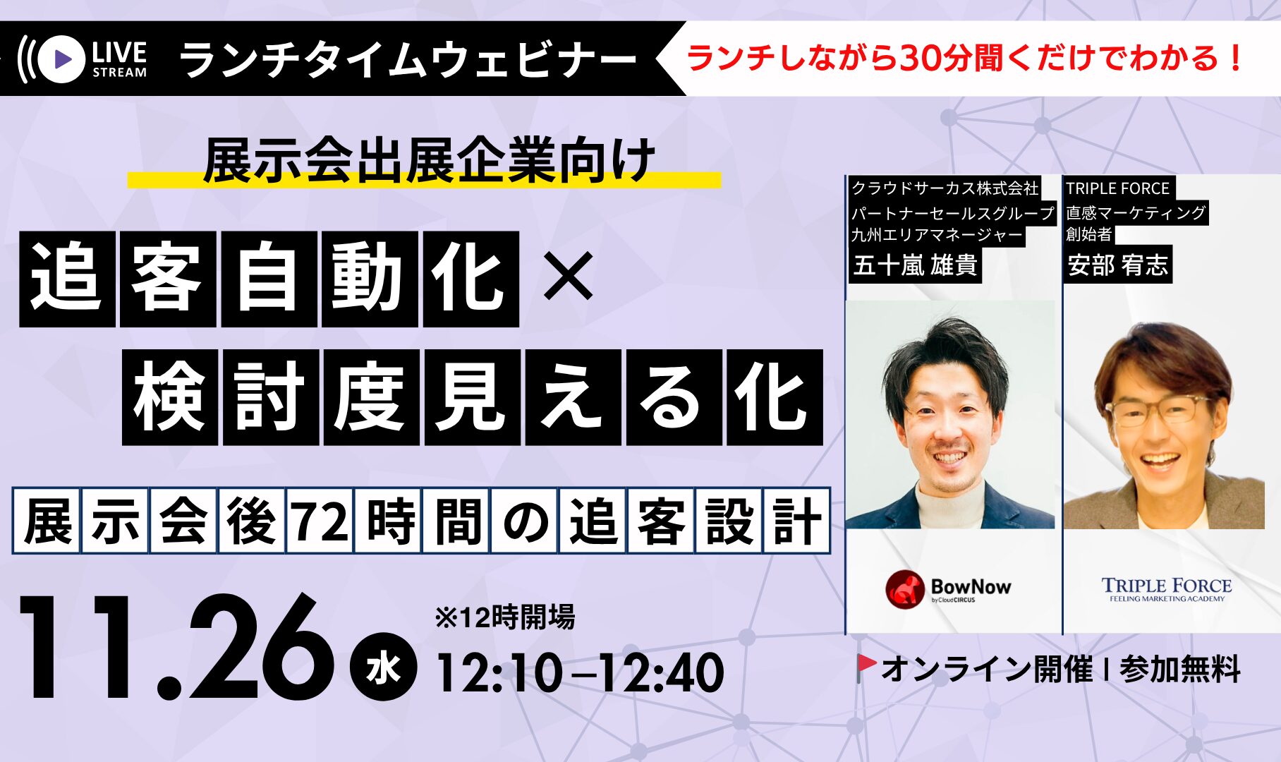 【11月26日ランチタイムウェビナー】展示会後72時間の追客設計「追客自動化×検討度見える化」