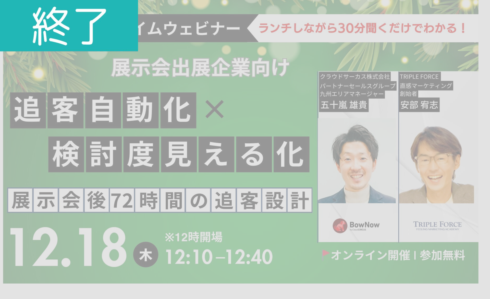 <開催終了>【12月18日ランチタイムウェビナー】展示会後72時間の追客設計「追客自動化×検討度見える化」