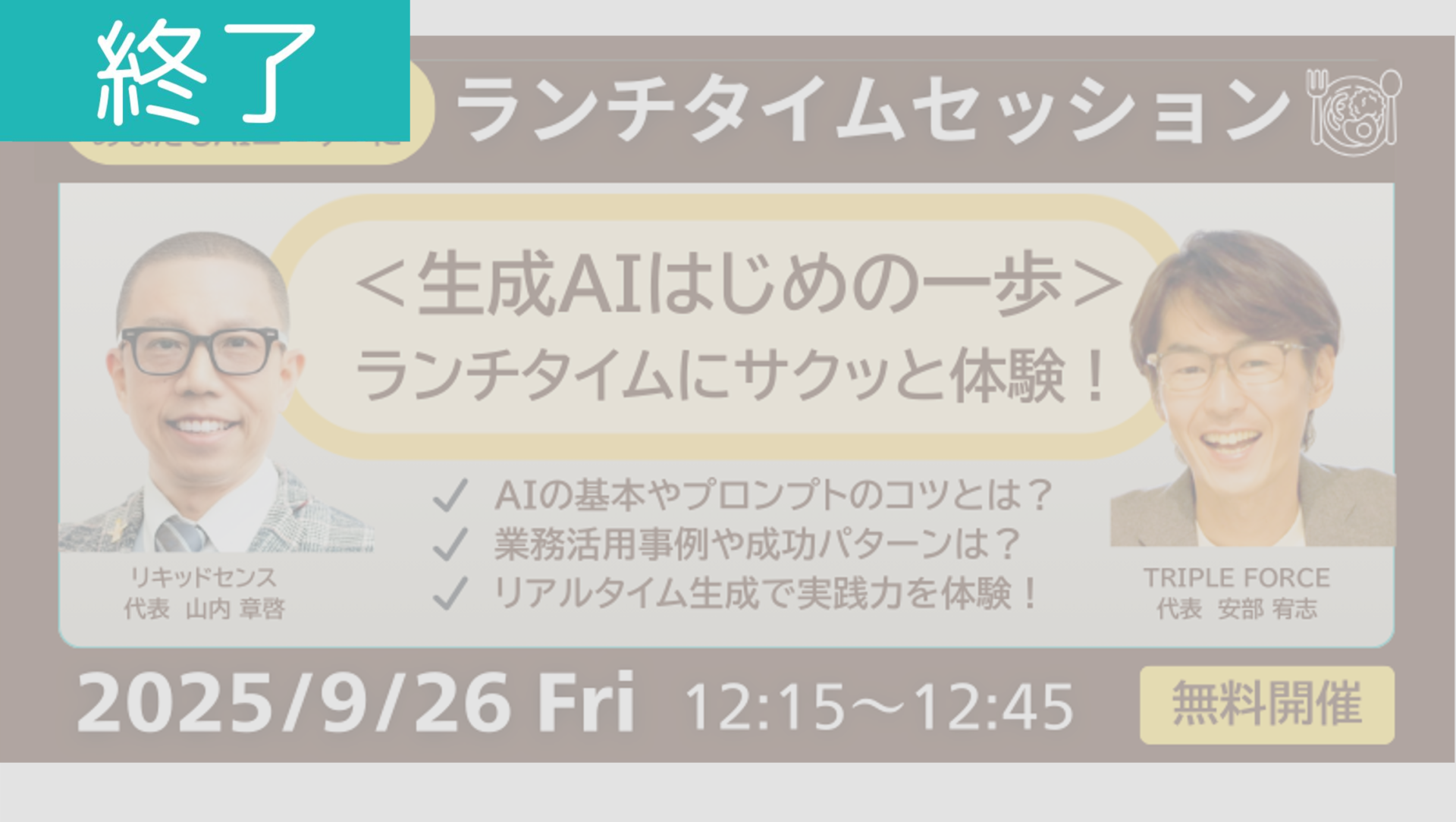 <開催終了>【9月26日ランチウェビナー】<生成AIはじめの一歩>ランチタイムにサクッと体験!